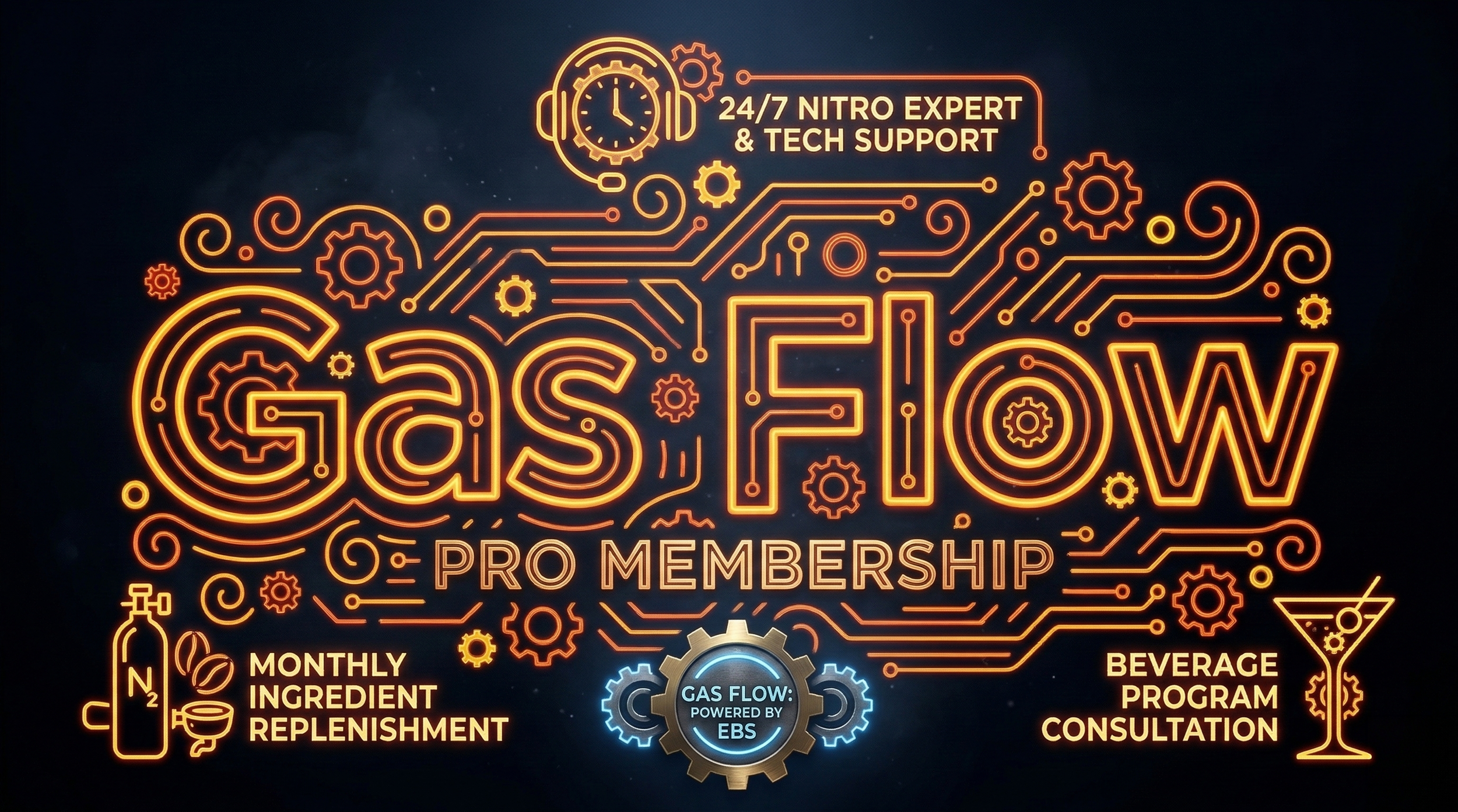 Cancel Anytime EBS Nitro-Infuser & 28 PSI Regulator Monthly 200-Serving Espresso & Syrup Fuel Kit Professional Hardware Maintenance 24/7 Expert Support & Consultation 20-Liter Batching Equipment Suite